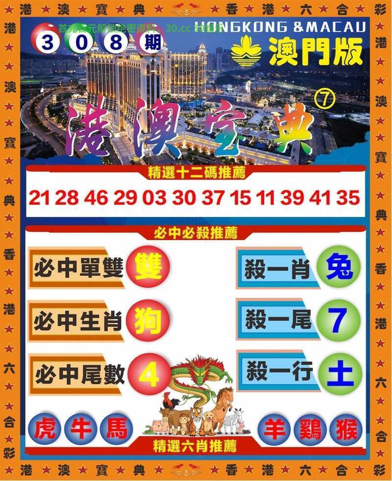 308期:🌺平特一尾🌺〖6666〗开:猴46准